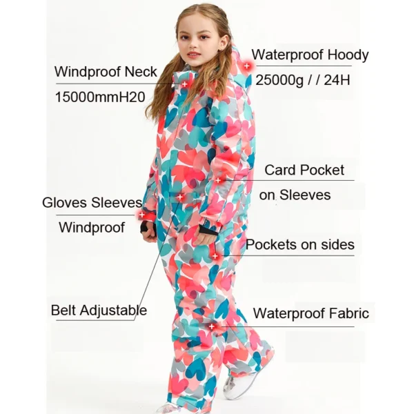 Children Snowsuit Kids Ski Jumpsuits One Piece Ski Overalls Kids Waterproof Windproof Girls Snowboarding Suits Snow Clothes