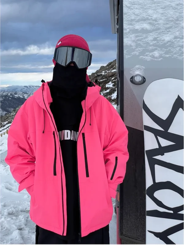 Unisex Fluorescent Pink Ski Jacket For Men Women Windproof Overalls Hoodie Waterproof Outdoor Jackets Snowboard Sports Clothing