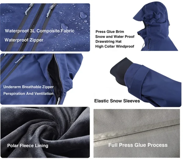 Fabric : Waterproof 3L composite fabric + Polar fleece lining