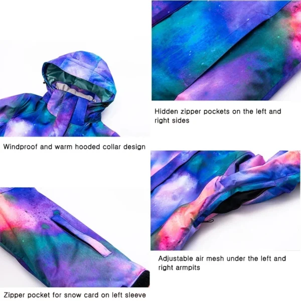 Women’s Winter Ski Jacket Warm Windproof Waterproof Snowboard Jackets Outdoor SportsBreathable Hooded Snow Coats for Female